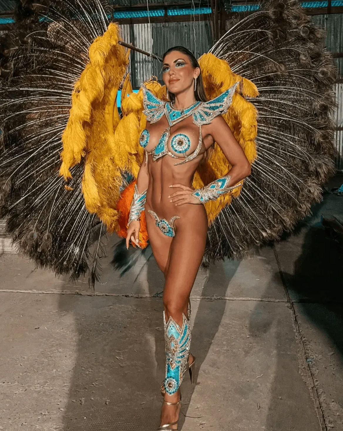 Muri Lopez的狂欢节服装是一件以孔雀为原型的衣服,她穿着这身衣服展示了傲人身材,收获了不少关注。