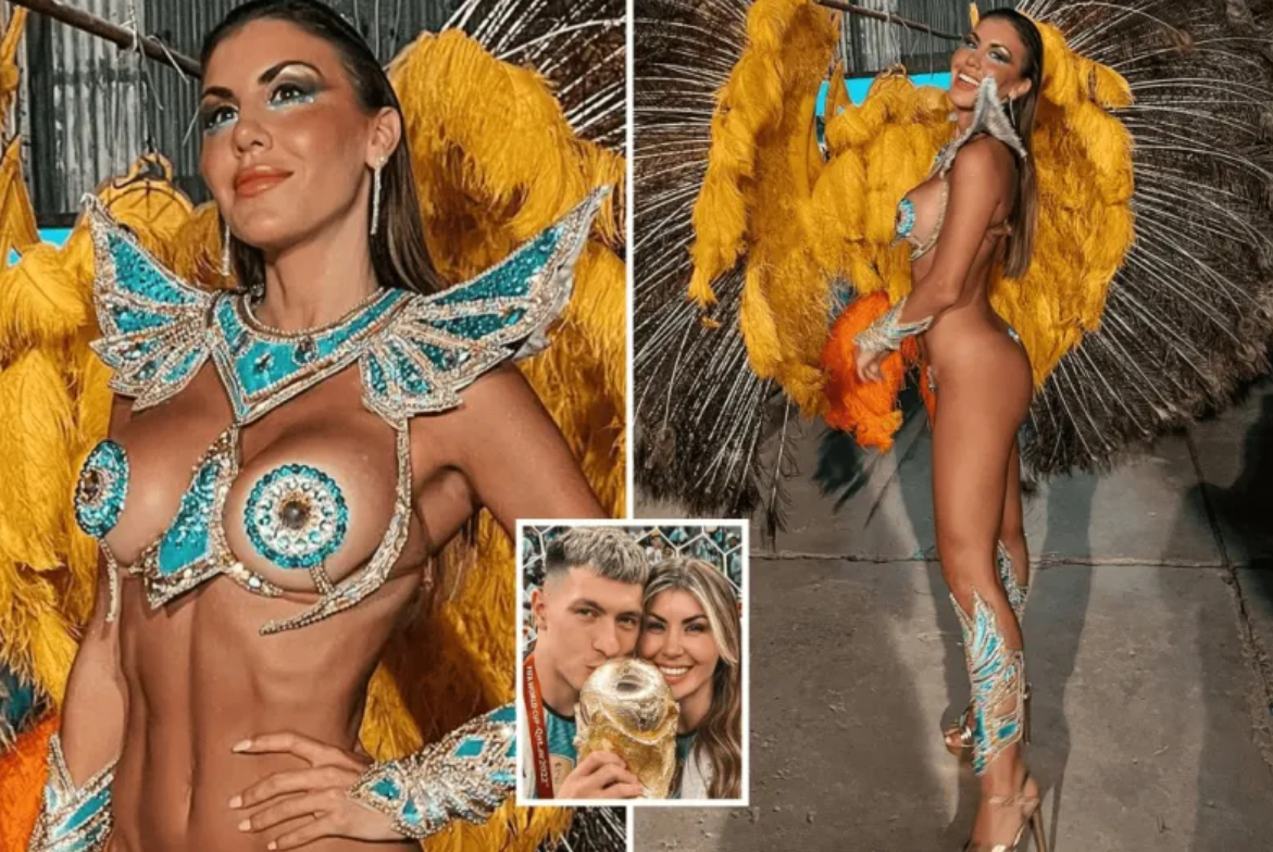 【利桑德罗-马丁内斯女友穿狂欢节孔雀服饰亮相,尽显好身材】 据《太阳报》报道,日前,曼联球员利桑德罗-马丁内斯的女友Muri Lopez身穿狂欢节服装亮相,很是惹人注意。