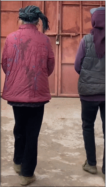 视频中两位历经岁月沧桑的老奶奶同步回头的瞬间,仿佛时间永远静止在了那一刻,皱纹里藏着神秘的故事线索,深色彝族服饰更像在诉说古老的传说。