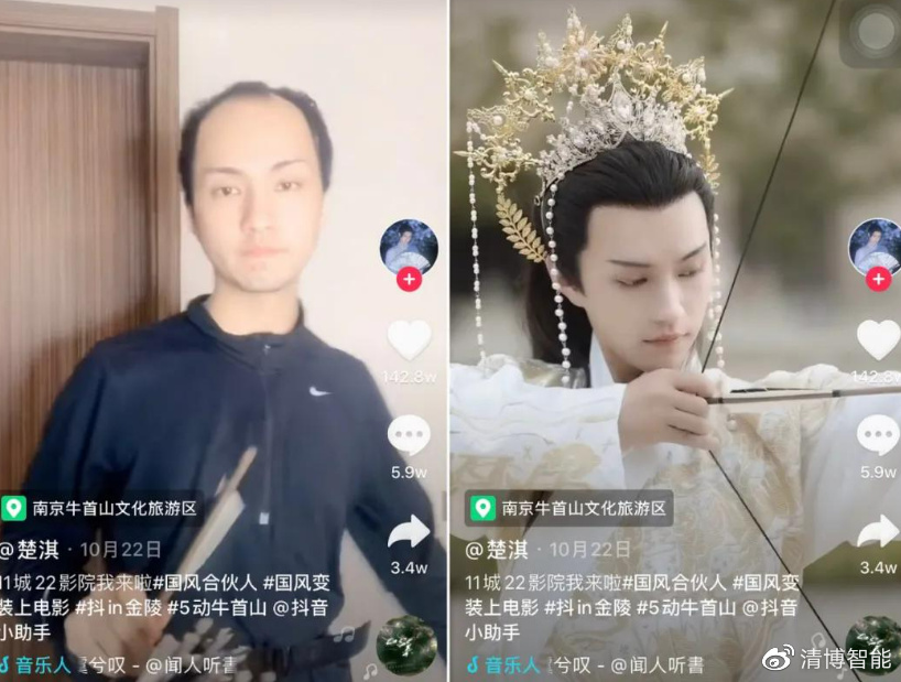目前,似乎只要视频卡点BGM,配以相关民族服饰就会引来流量的驻足,这里的关键就在于“变装”。