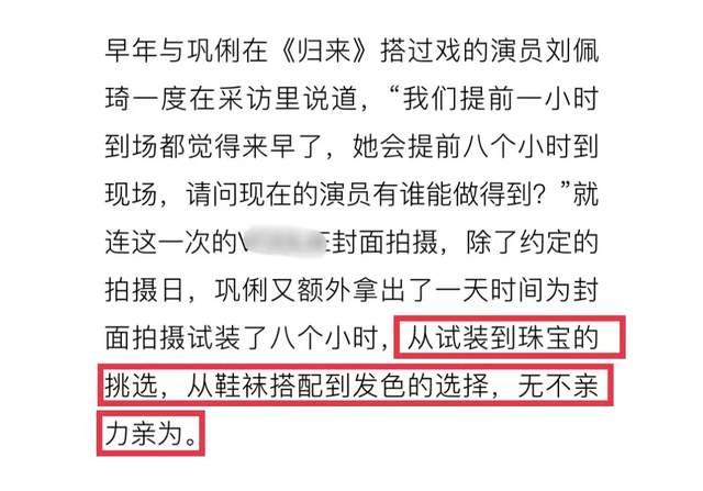 “亲力亲为”这四个字就能看出此次的服装似乎是巩俐亲自搭配的,那么她穿着辱华品牌服饰拍摄杂志难免会受到网友的质疑。