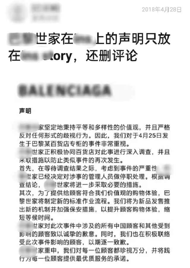 此事被曝出之后,不少中国人要求某某世家道歉,并集体抵制、拒绝购买该品牌的任何商品。虽然事后该品牌在网上道歉,但有网友发现这则道歉动态过了24小时之后就被删除了,态度模糊令网友愤怒。