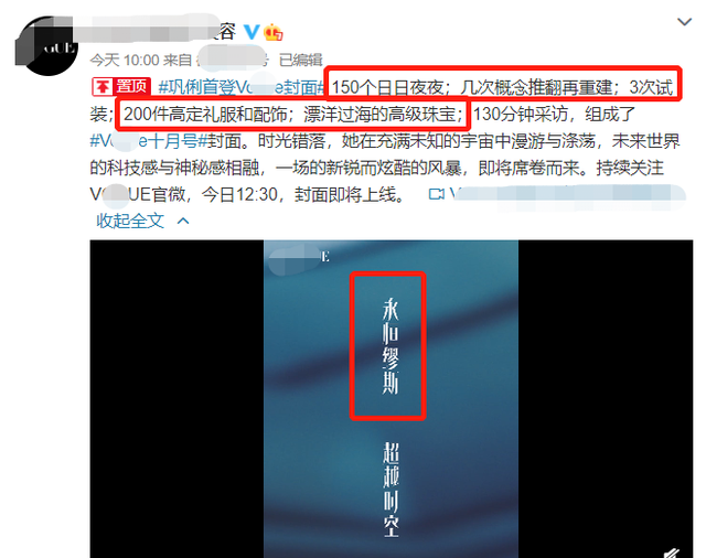 据悉,某知名时尚杂志于13日在网上公开了巩俐拍摄的封面图,该杂志对此次的拍摄非常重视,花费了150个日夜来策划此次拍摄,还精心准备了200多件高定礼服和配饰让巩俐挑选,相当用心。
