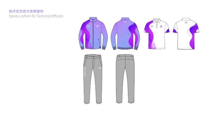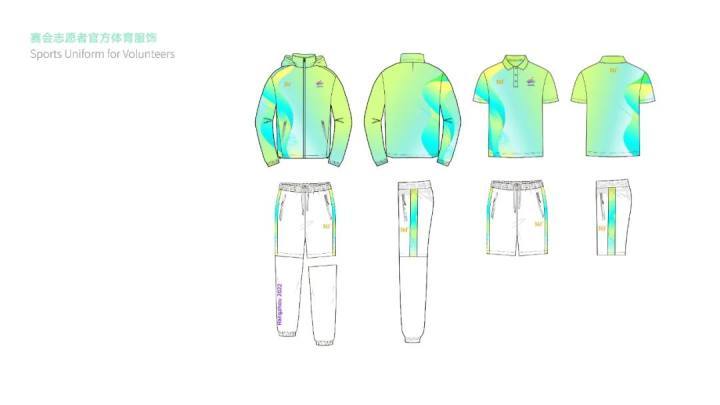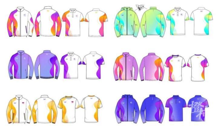 杭州亚运会官方体育服饰选用杭州亚运会核心图形变化丰富的右侧部分,整体呈现出灵动润泽的曲线美。中间融入充满时尚感、科技感的互联网云点状元素,融合传统与创新,交错呈现的点、线、面元素,给人以绵延的视觉美感和无穷的想象空间,象征着欢聚与交融、新 生与活力,体现了超越共融的比赛景色。