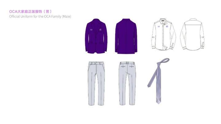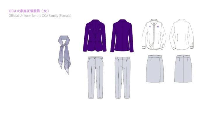 升旗手服装色彩来源于亚运色彩“月桂黄、水墨白”,上下皆白,配以橘黄、浅黄象征丰收景象渐变色的领带点缀;造型采用青年休闲西装款式。