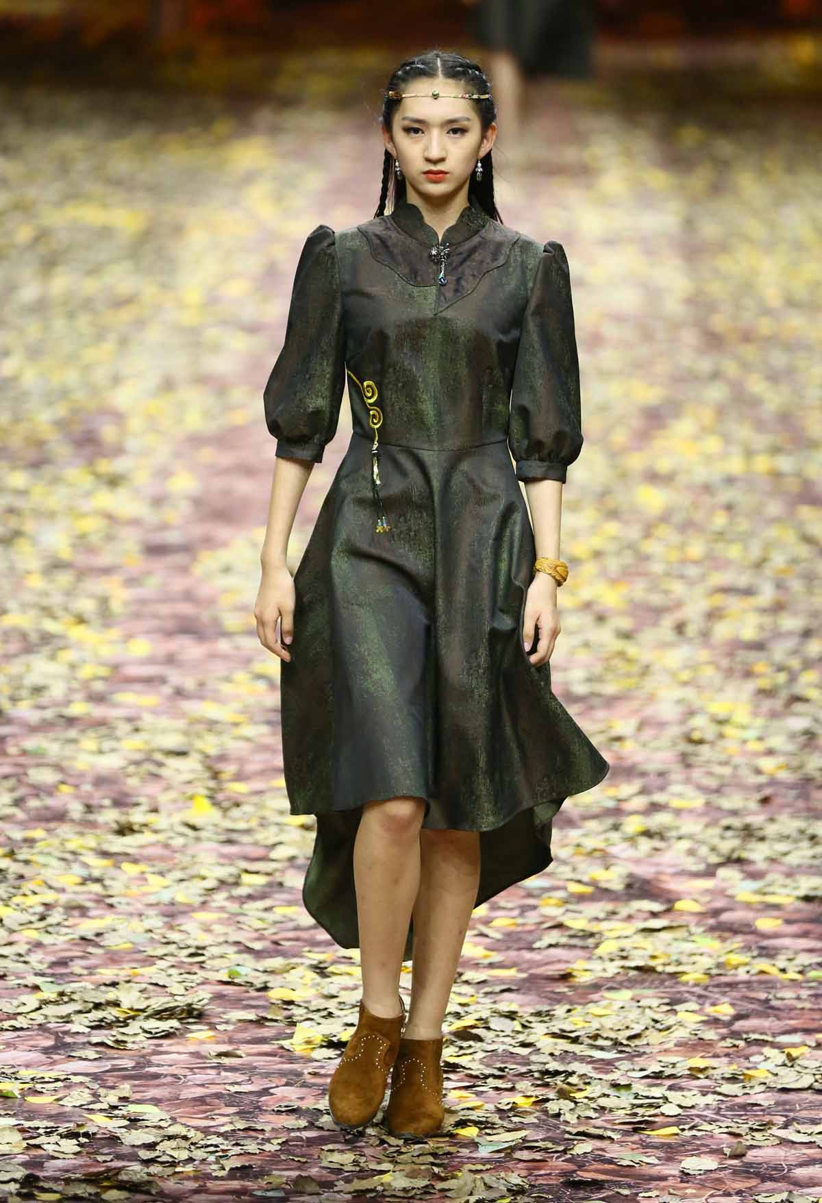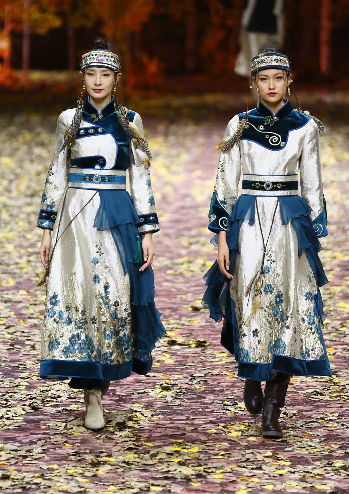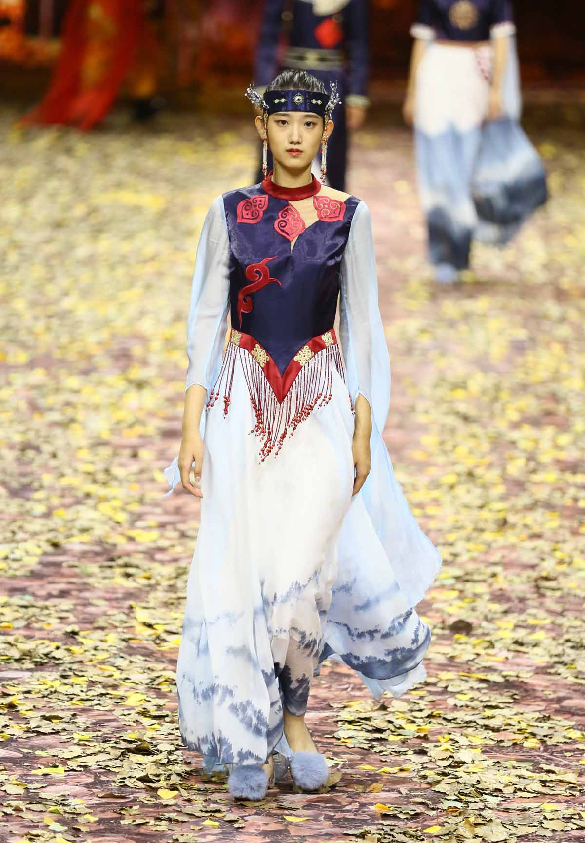 9月5日,设计师金景怡携鄂伦春文化服饰秀亮相2022春夏系列中国国际时装周,这场由鄂伦春元素与时尚结合的服饰大秀,设计师将“敬畏森林山河”作为主题,传递鄂伦春民族对大森林的敬畏、对山河的敬畏。将鄂伦春的图腾、纹饰以及传统的桦树皮制作技艺、剪纸技艺、刺绣技艺结合现代手工艺技艺,法绣、珠绣、数码印花、手绘等,与现代服装制作技术和生活方式结合,实现民族元素与时尚完美结合。