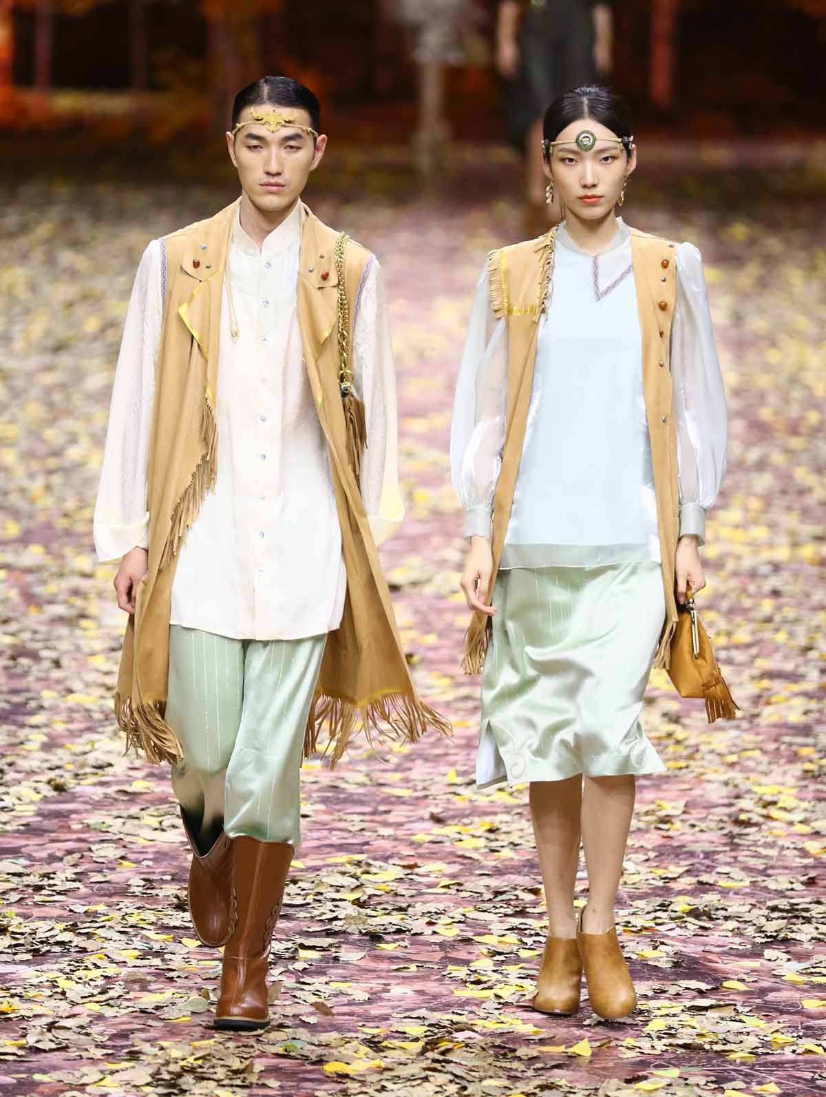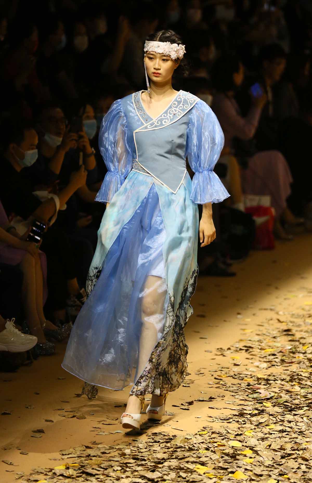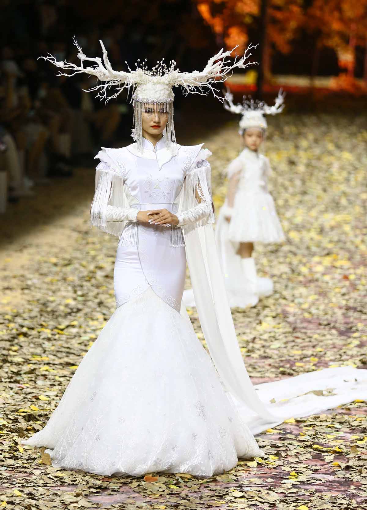 9月5日,设计师金景怡携鄂伦春文化服饰秀亮相2022春夏系列中国国际时装周,这场由鄂伦春元素与时尚结合的服饰大秀,设计师将“敬畏森林山河”作为主题,传递鄂伦春民族对大森林的敬畏、对山河的敬畏。将鄂伦春的图腾、纹饰以及传统的桦树皮制作技艺、剪纸技艺、刺绣技艺结合现代手工艺技艺,法绣、珠绣、数码印花、手绘等,与现代服装制作技术和生活方式结合,实现民族元素与时尚完美结合。