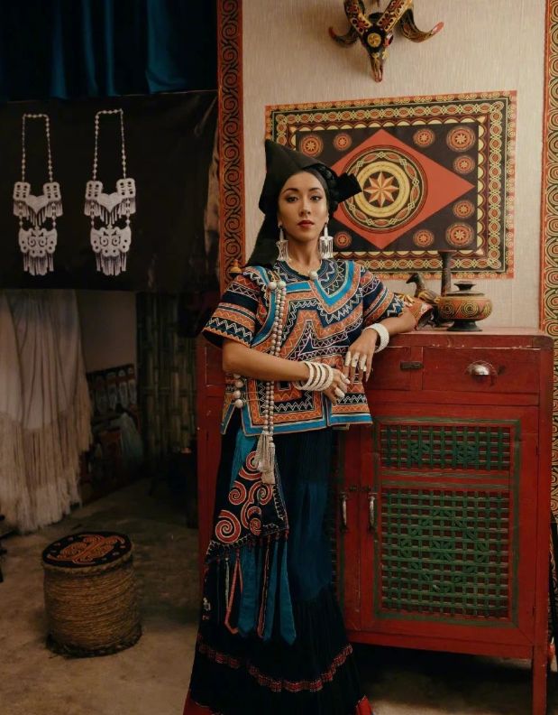 吉克隽逸穿阿都服饰好绝,彝族传统造型端庄优雅,彰显民族特色。最近吉克隽逸拍摄时尚大片,穿着一套彝族阿都服饰出镜,具有很强的民族色彩,整体造型彰显优雅迷人的时尚韵味。
