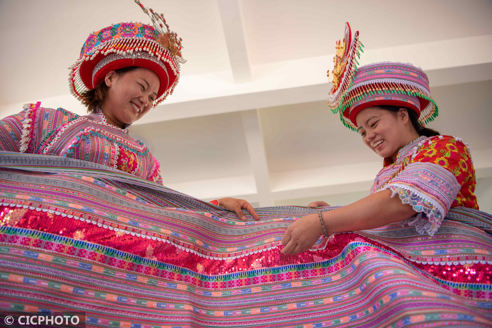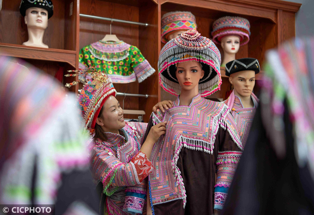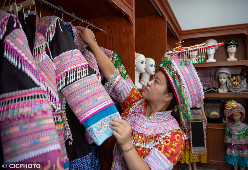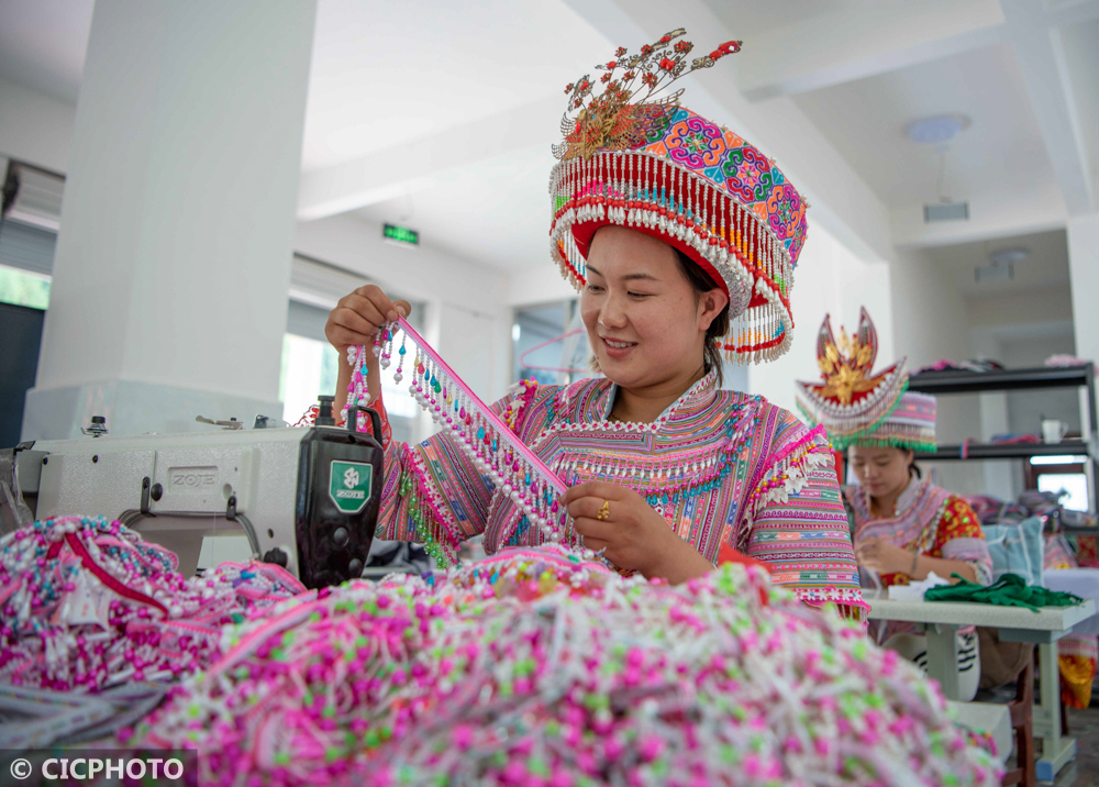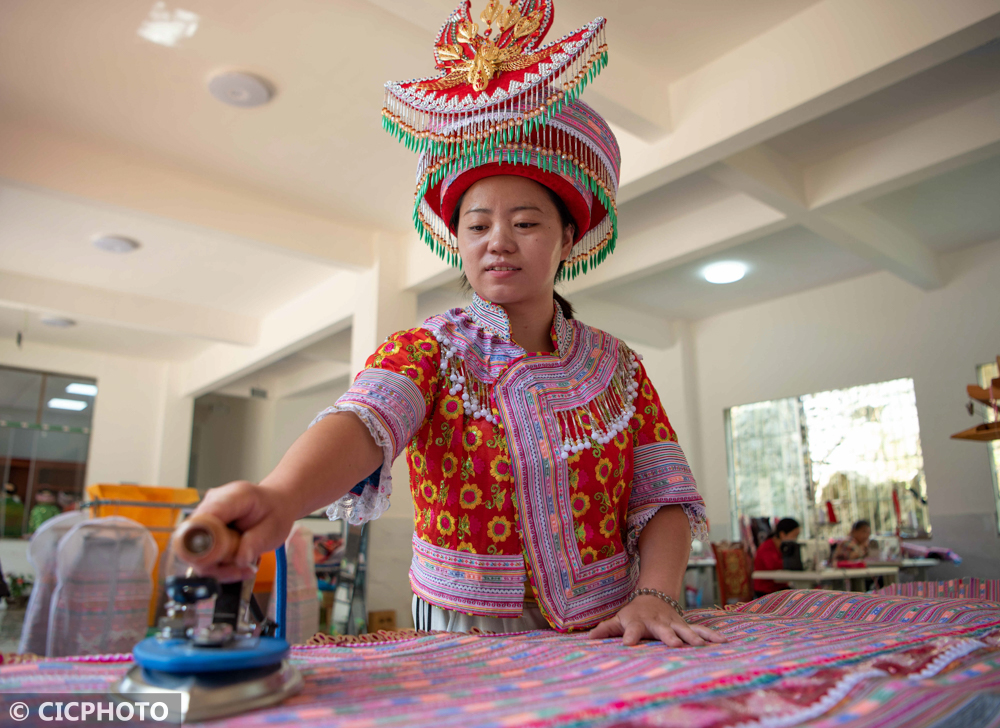 贵州省毕节市百里杜鹃管理区金坡乡锦星村苗族人口占全村总人口的80%以上,当地不少苗族妇女都掌握了制作苗族服饰的技艺,并长期以家庭手工作坊的形式进行制作。锦星村利用村集体经济资金和对口帮扶资金,以“支部+合作社+农户”的模式成立苗族服饰加工厂,使其向规模化、产业化发展,将民族文化传统产业与旅游结合,解决50多名苗族妇女就业。