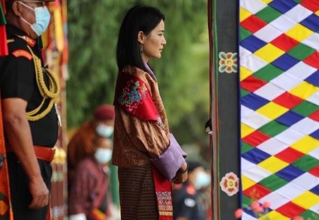 不丹王后罕见扎马尾亮相!一身金色服饰好闪耀,眼神忧郁毫无笑容