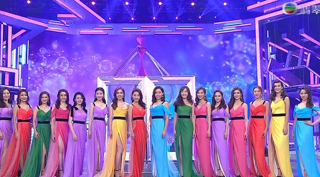 当大家都在吐槽的时候,至少我们知道港姐选拔赛主办方是认真的,他们就是给港姐准备了饱和度这么高五颜六色的礼服,乍一看台上仿佛出现了彩虹,港姐什么样已经不重要了,入目的都是极具冲击力的颜色,整个舞台都变得花里胡哨的。