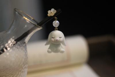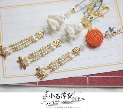 第二款适合在中秋节佩戴的汉服视频依然是小石潭记 原创汉服配饰 家的哦,名字叫做兔圆圆,是一款发簪。这款发簪主要有眯眼兔和招手兔两种样式,看上去也是非常可爱的。略显端庄的发簪,配上憨态可掬的小兔子,这样就更加的具有少女感啦。