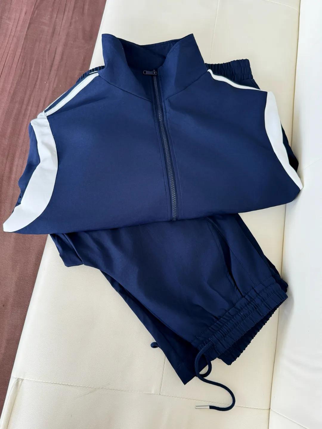 平时不管是去打球运动、还是上班上学,穿这套都很合适。