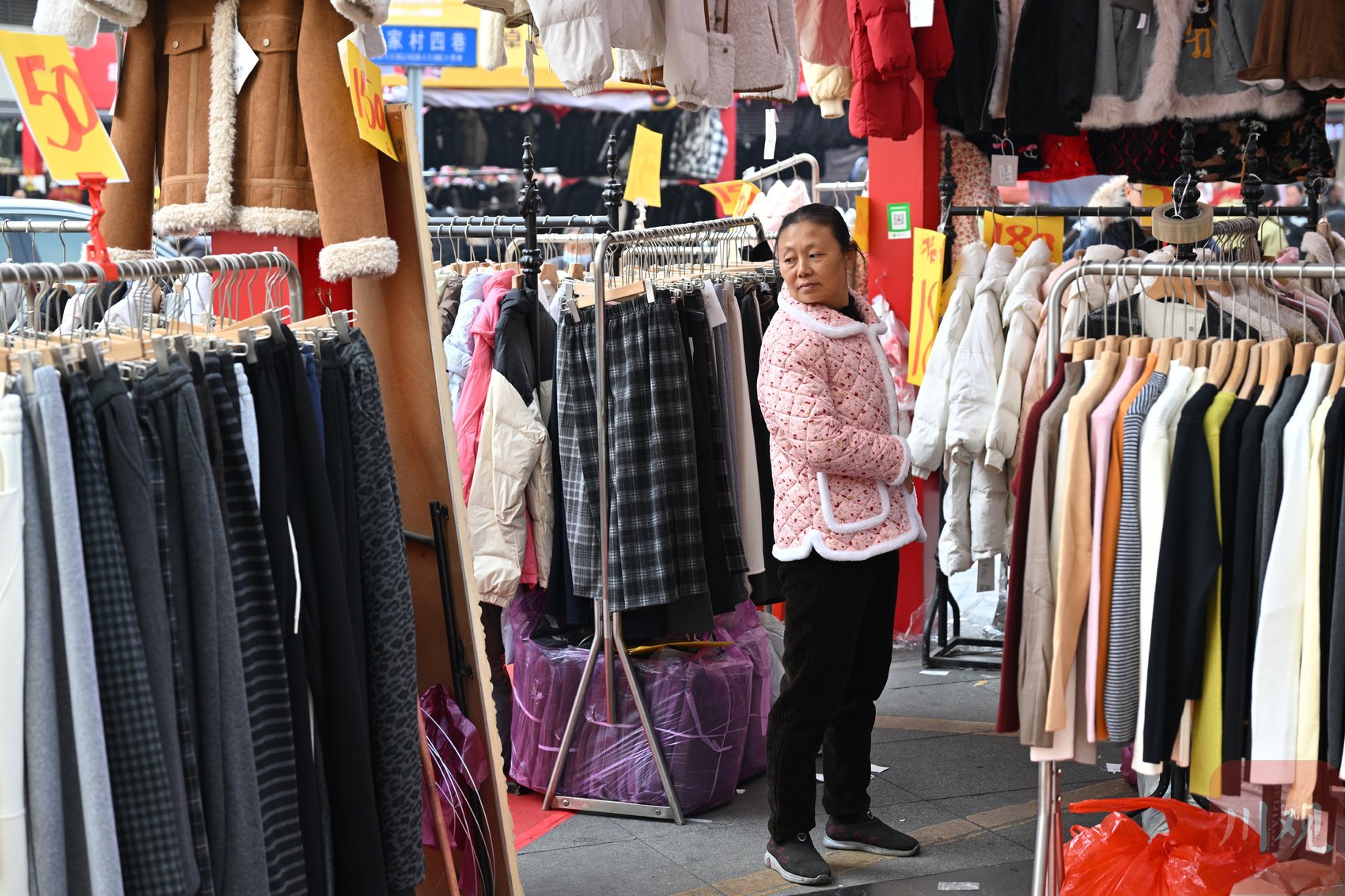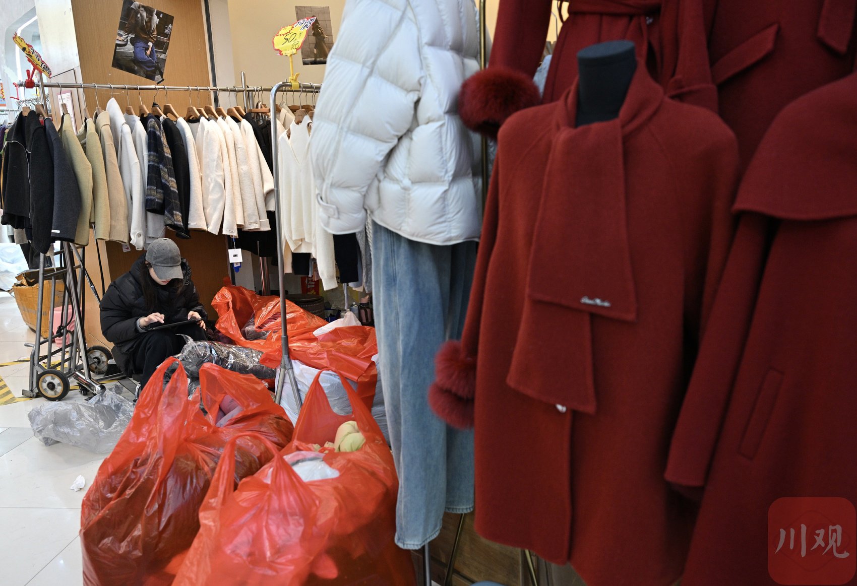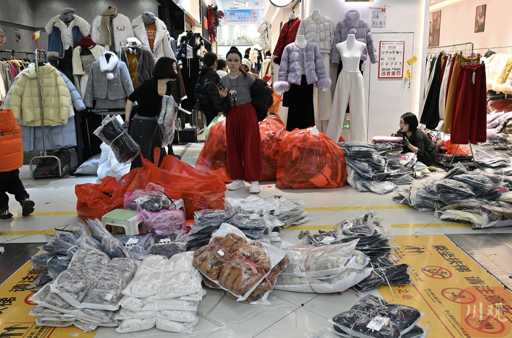 市民选购服饰。据了解,荷花池批发市场近期销量上涨,预计销售高峰将延续至除夕前。除了成人服饰,亲子款、长辈款服饰的销量也看涨,一站式采购成为不少家庭的选择,红火的消费场景为新春增添了浓浓暖意。